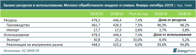 тонн обработанного молока и сливок, против 476,3 тыс. тонн годом ранее. 30%