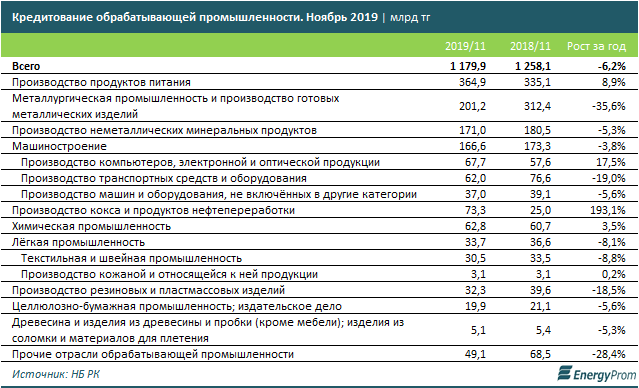 В обрабатывающей промышленности наибольший рост кредитной поддержки отмечен