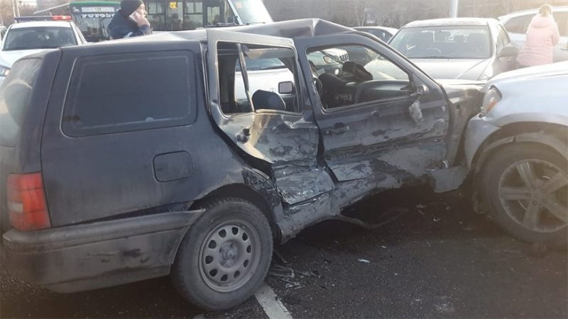 откинуло в стоявшие на перекрестке автомашины Kia, Mercedes и Toyota Camry.