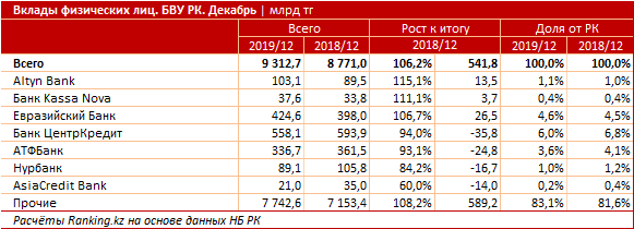 — на 6,7% за год, до 424,6 млрд тенге по итогам 2019 года.