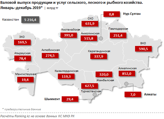 сельскохозяйственном секторе валовой выпуск составил 5,22 трлн тенге — с учетом