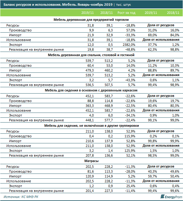 месяцев 2019 года казахстанские компании произвели мебели на 37,9 млрд тенге. С