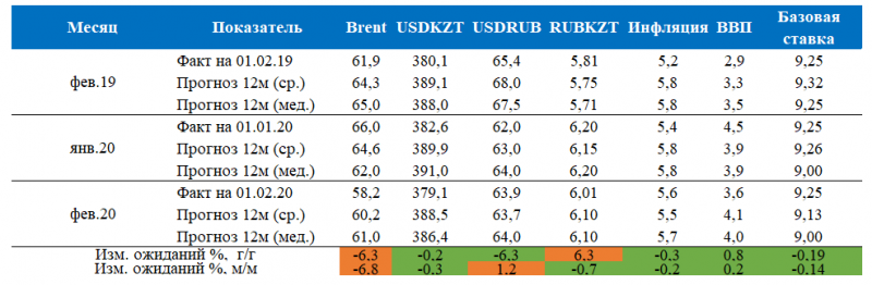 По прогнозам экспертов к началу марта курс в паре USD-KZT в среднем ожидается на уровне 380,26 тенге за доллар, стоимость нефти может вырасти до 57,7