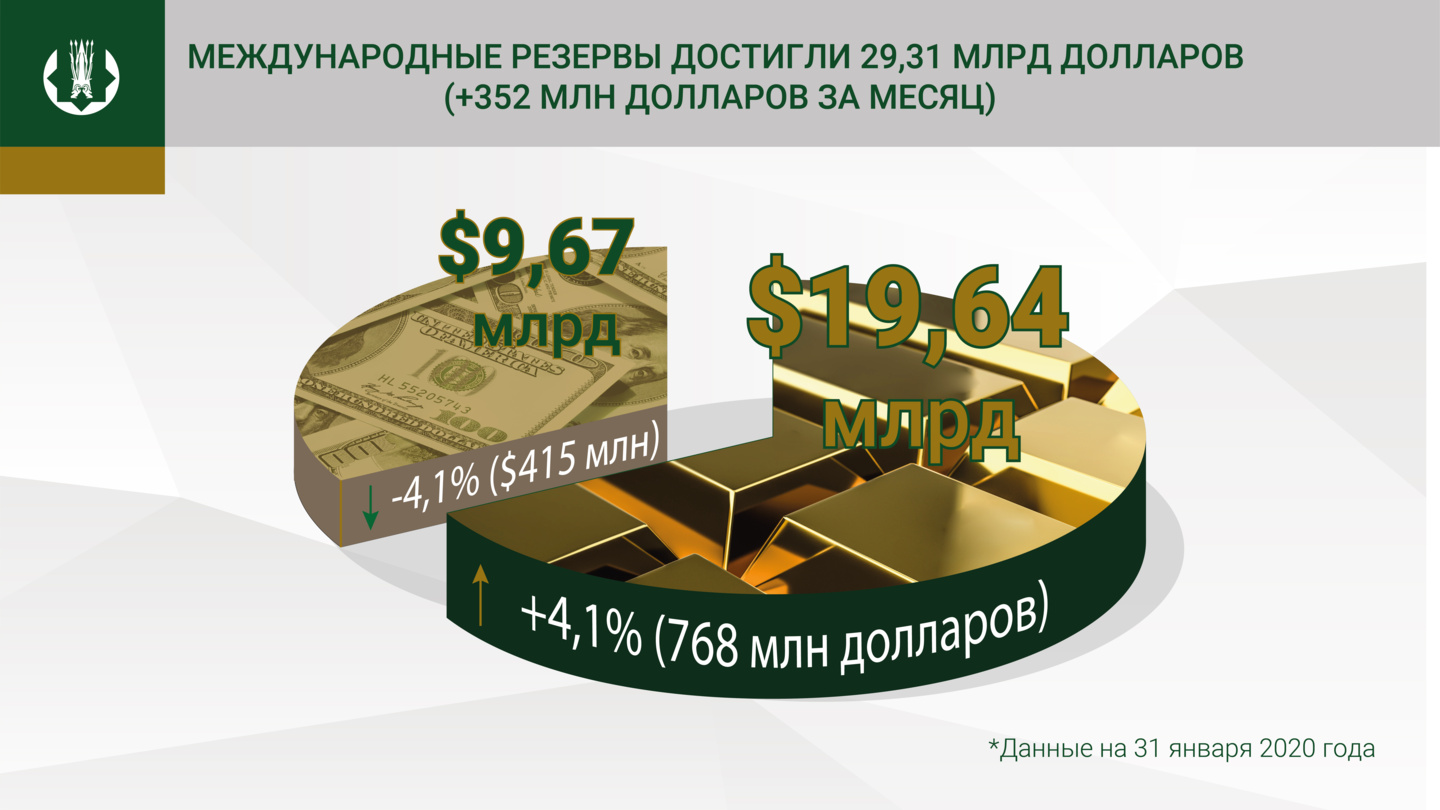 Международные резервы по состоянию на 31 января 2020 года составили 29,31