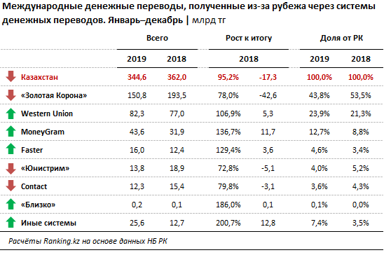 Western Union: 82,3 млрд тенге, рост за год на 6,9%. Замыкает тройку лидеров