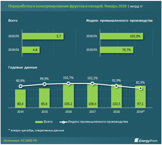 За январь 2020 года казахстанские компании переработали и законсервировали