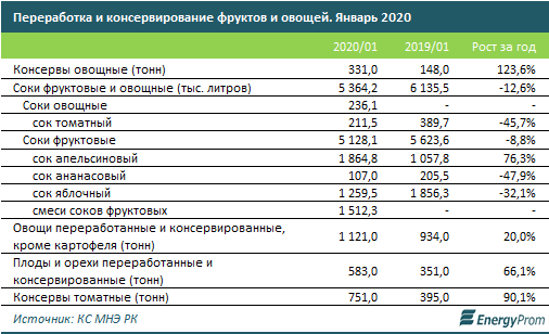 В натуральном выражении в январе 2020 года выпуск овощных консервов достиг