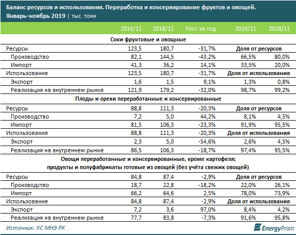 К примеру, рынок переработанных плодов и орехов обеспечен импортом сразу на