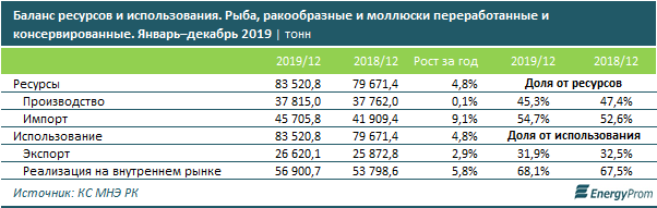 и моллюсков. За январь-декабрь 2019 года потребности были перекрыты местным