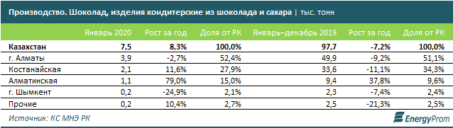 первым месяцем прошлого года на 2,7%. Рост же выпуска шоколада и изделий из
