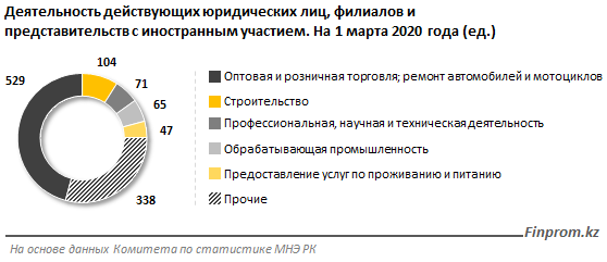 На 1 марта в Казахстане действуют 1,154 тыс. юридических лиц, филиалов и