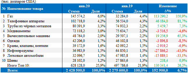 января 2020 года внешнеторговый оборот страны составил 6,8 млрд долларов,