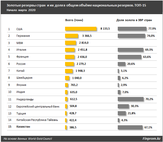 золота в стране составили 386,5 тонны. Таким образом, в текущем году Казахстан