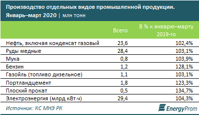итогам января-марта увеличилась добыча сырой нефти, природного газа и