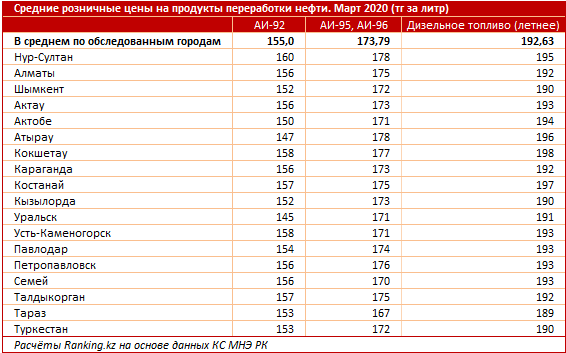 бензина составила 0,41 доллара США, или 174 тенге за литр, что является лучшим