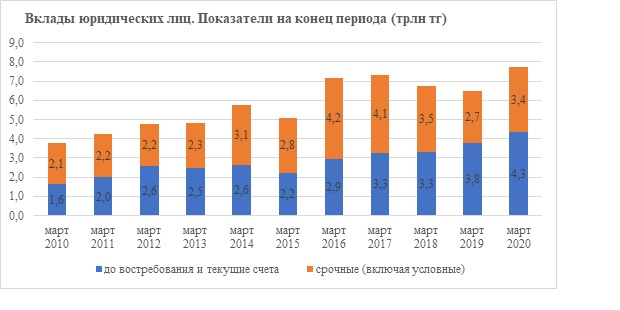 тенге. Портфель вкладов до востребования и текущих счетов бизнеса достиг к