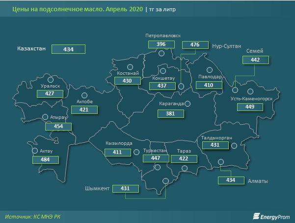 Казахстану в апреле составила 434 тенге за 1 литр — всего на 0,3% больше, чем