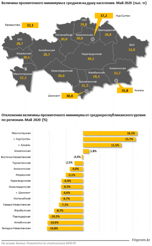 уровня. В Нур-Султане и Алматы прожиточный минимум составил 37,2 тыс. и 35,8