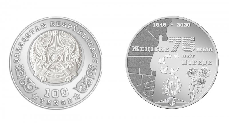 Коллекционные монеты «75 лет Победе» из серебра номиналом 500 тенге,