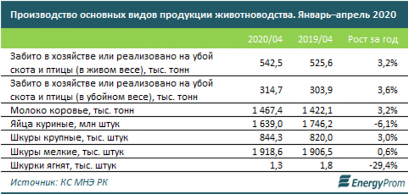За январь–апрель 2020 года валовой выпуск продукции животноводства достиг