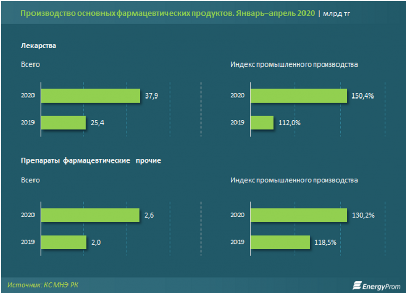 За январь-апрель 2020 года фармацевтические компании РК произвели основных