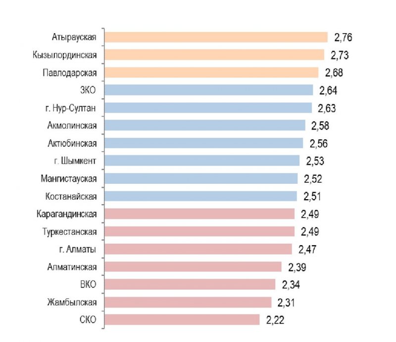 тройку лидеров по данному индикатору можно отнести Атыраускую и Павлодарскую