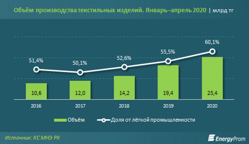 тканей (на 3,5%, до 8,1 млн кв. м, за январь-апрель 2020 года) и готовых