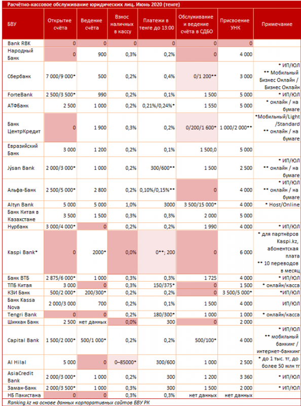 Kaspi.kz, имеется абонентская плата). У остальных БВУ комиссия начинается от