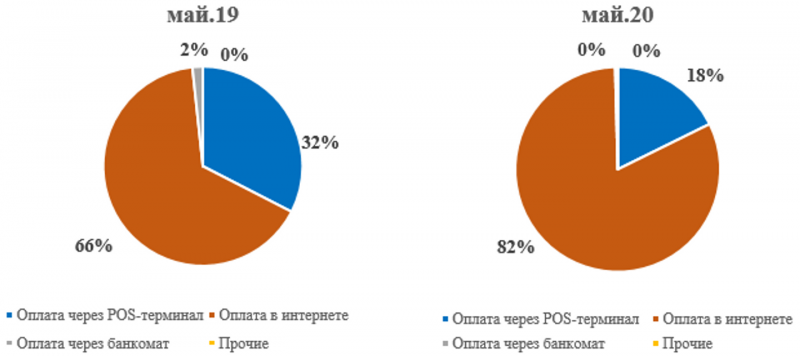 мае отмечался рост как платежей через POS-терминалы (+43,1%), так и оплата в