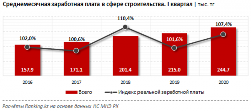 244,7 тыс. тенге — на 13,8% больше, чем в I квартале 2019-го. Реальный рост с