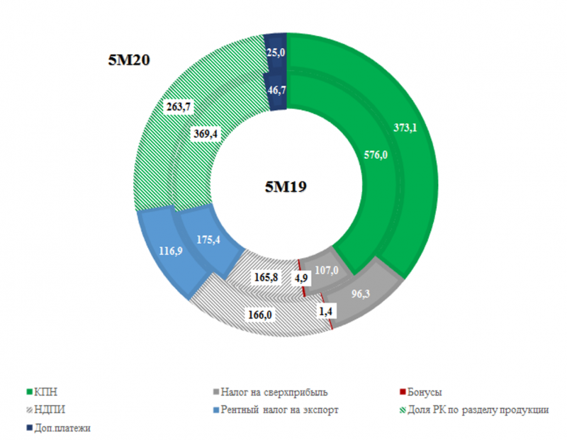 тенге, до 379,1 млрд тенге, тогда как доля РК по разделу продукции уменьшилась