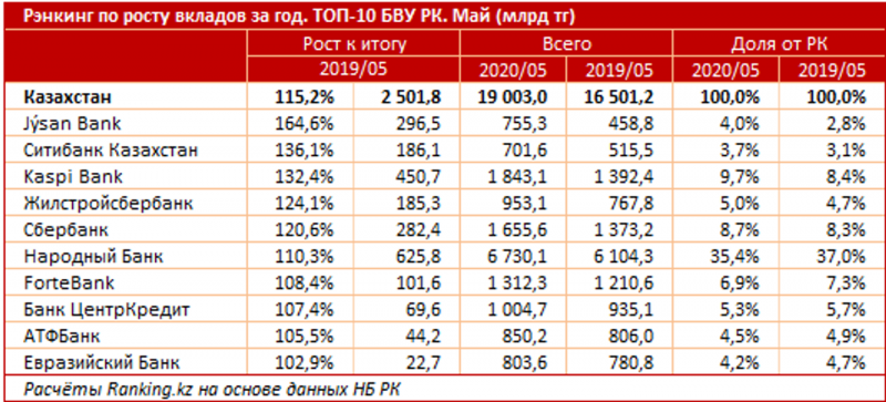 Наибольший рост вкладов среди топ-10 банков страны наблюдается в Jysan Bank: