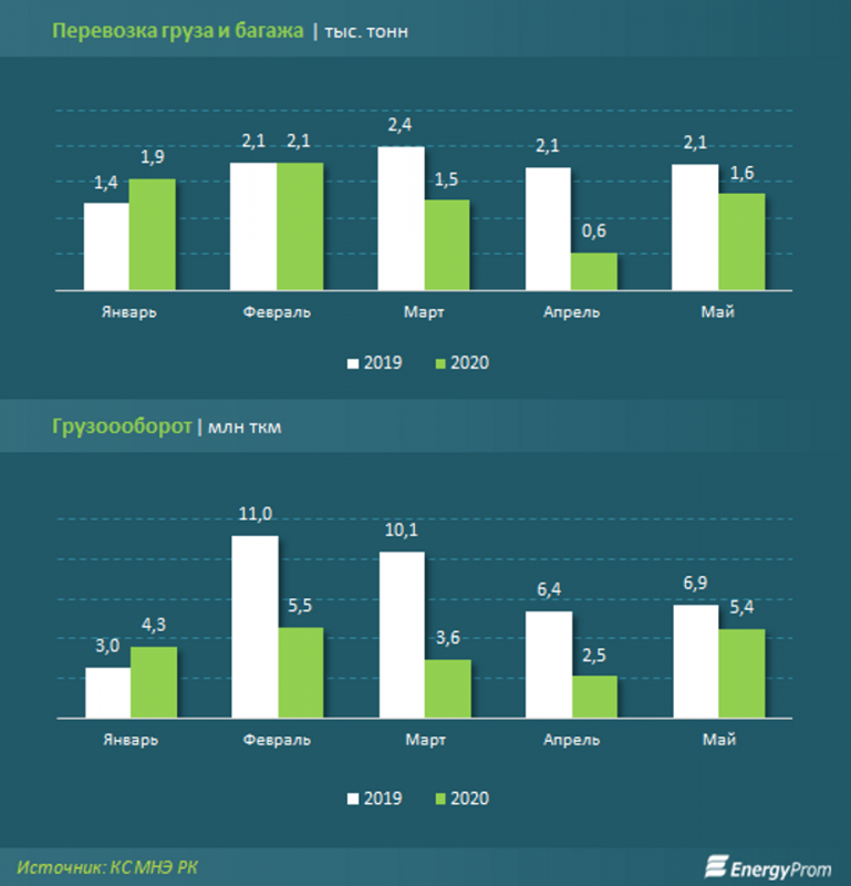 меньше, чем в январе-мае 2019 года. В мае перевозки груза и багажа достигли 1,6