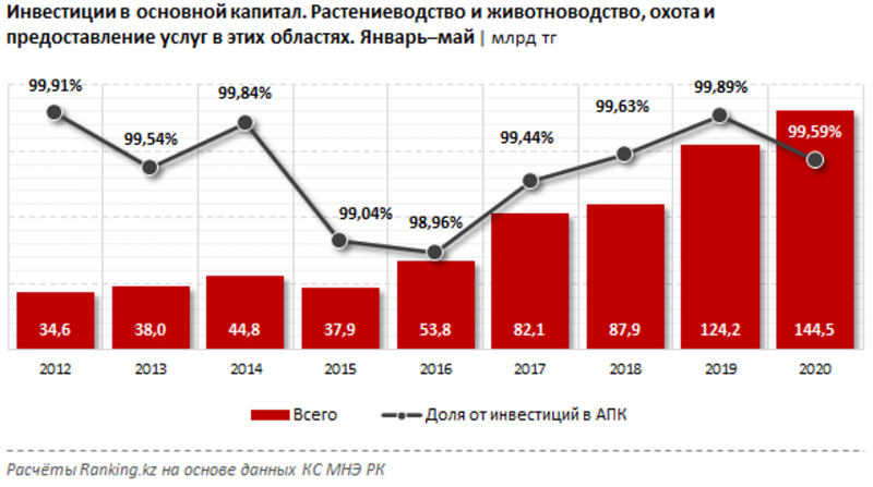 годом ранее. Это 99,5% от совокупного объема капитальных вложений в сельское,
