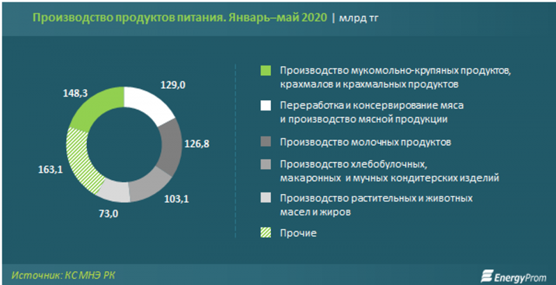 За январь-май 2020 года в Казахстане произвели продуктов питания на сумму
