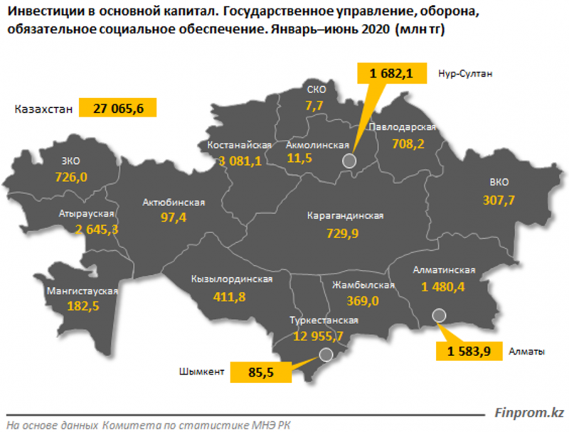 Еще 11,4% капвложений пришлось на Костанайскую область: 3,1 млрд тенге — в 9,1