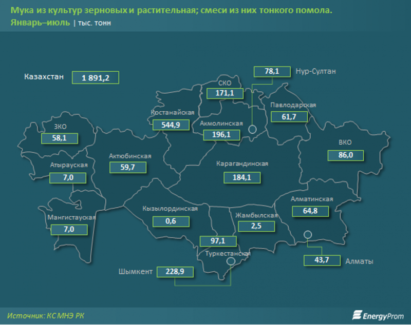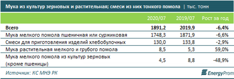 2020 года мукомолы Казахстана произвели 1,9 млн тонн муки — на 6,4% меньше, чем