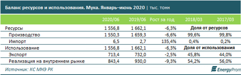 ресурсов: 713,4 тыс. тонн муки — на 2,5% меньше, чем годом ранее.