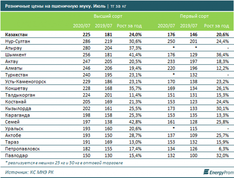 2020 года на базарах и в магазинах страны пшеничная мука высшего сорта стоила
