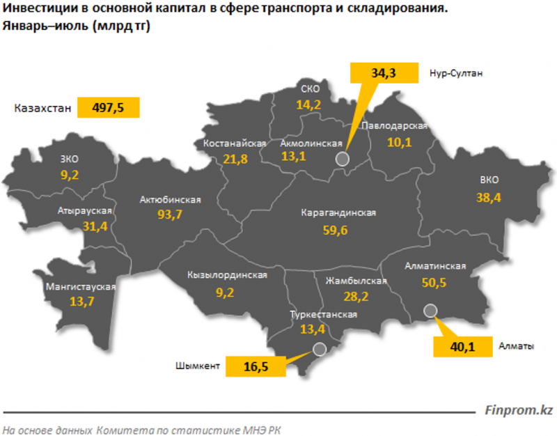года составил 497,5 млрд тенге, что составляет 8,1% от всего объема инвестиций в