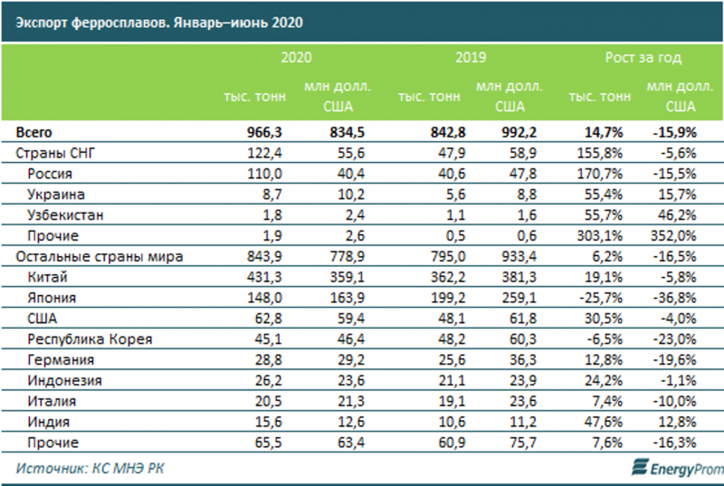 ферросплавов за первое полугодие в натуральном выражении достиг 966,3 тыс. тонн