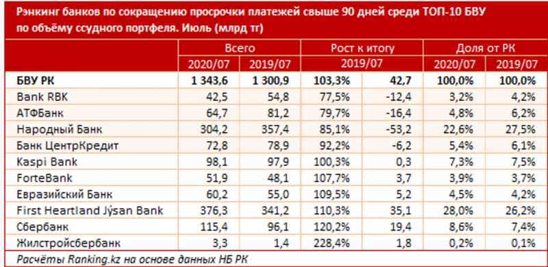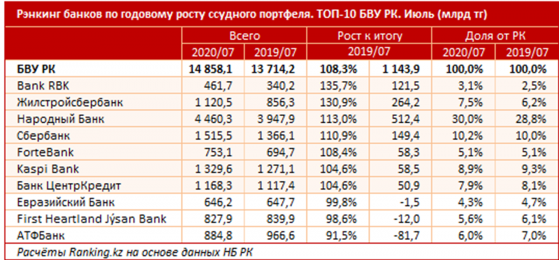 на ощутимые 8,3%. Рост продемонстрировали 7 из 10 крупнейших кредиторов РК.