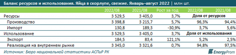 В то же время экспорт, напротив, увеличился в 2,2 раза, до 184,5 млн яиц.
