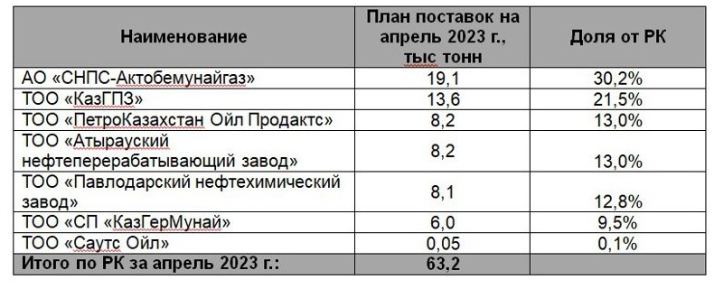 В последнее время распространяется мнение, что причиной повышения цен на газ становятся частные компании. Но давайте посмотрим кто в Казахстане производит сжиженный газ. Согласно плану поставок сжиженного нефтяного газа вне товарных бирж на апрель 2023 года, размещенному на официальном сайте Министерства энергетики РК, производителями СНГ являются: