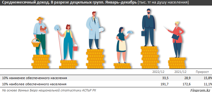 в 2022 году составил 191,7 тыс. тенге, увеличившись за год на 11,1%. Впрочем,