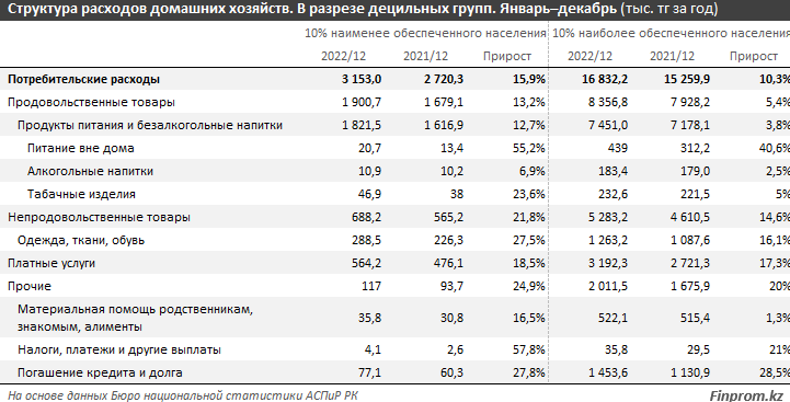 богатых и бедных в Казахстане. В целом за прошлый год общие потребительские