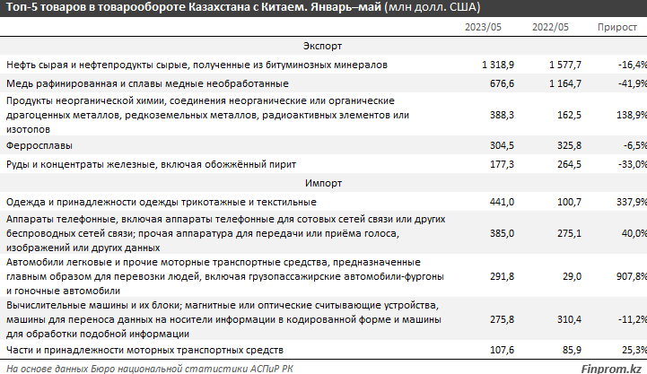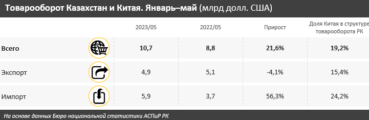 январь–май текущего года товарооборот Казахстана с Китаем достиг 10,7 млрд долларов,