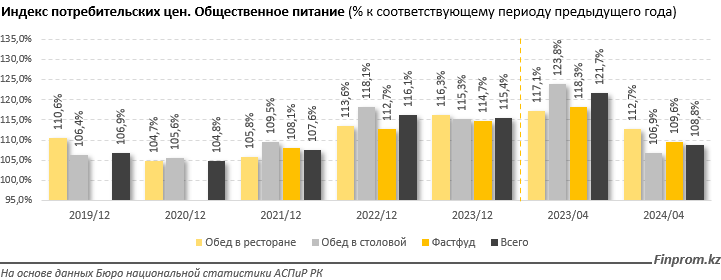 Примечательно, что, помимо увеличения суммы в абсолютном значении, выросла и доля трат на питание вне дома от общих продовольственных расходов казахстанских семей. Если в 2022-м она составляла 3,1%, то в прошлом году — уже 4%.