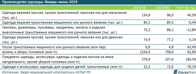 млн тенге, рост за год — сразу в 2,6 раза. Выпуск трикотажной одежды и