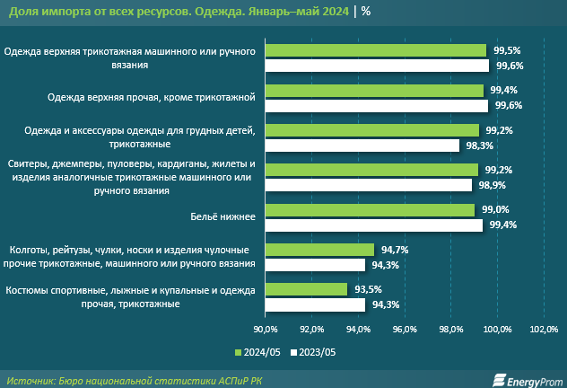 помимо трикотажной, удельный вес импорта составил 99,4%, в секторе